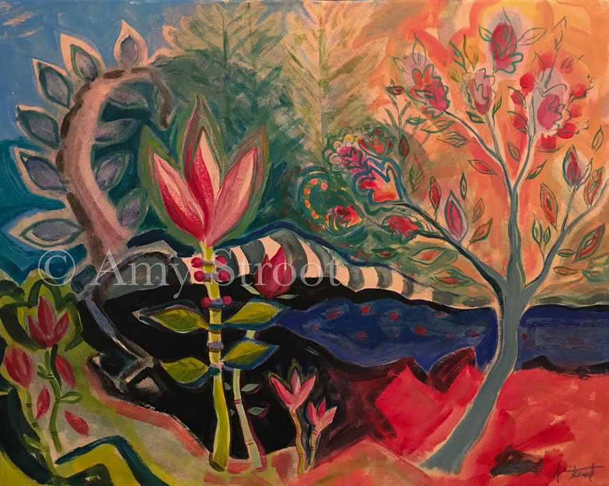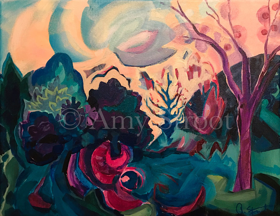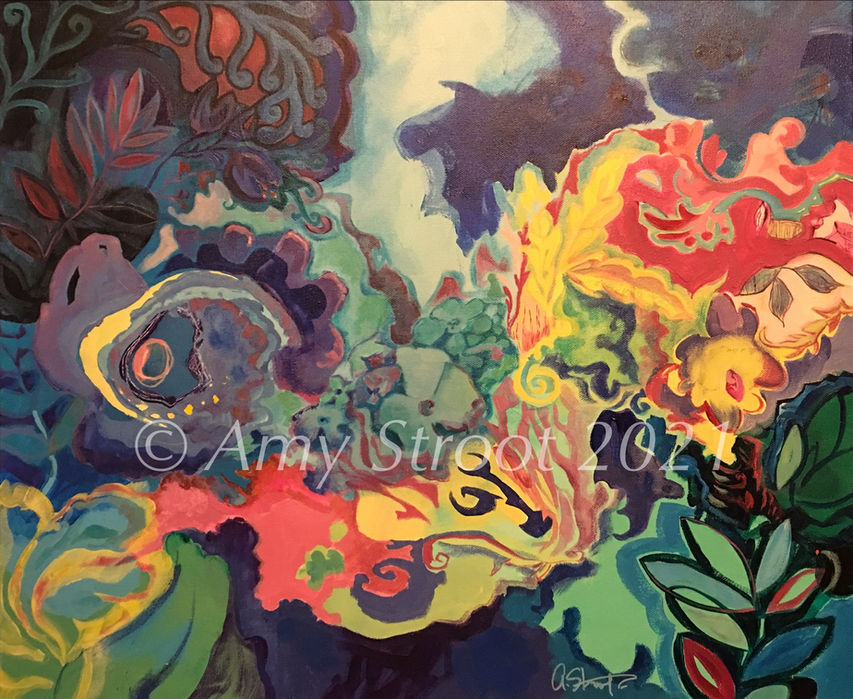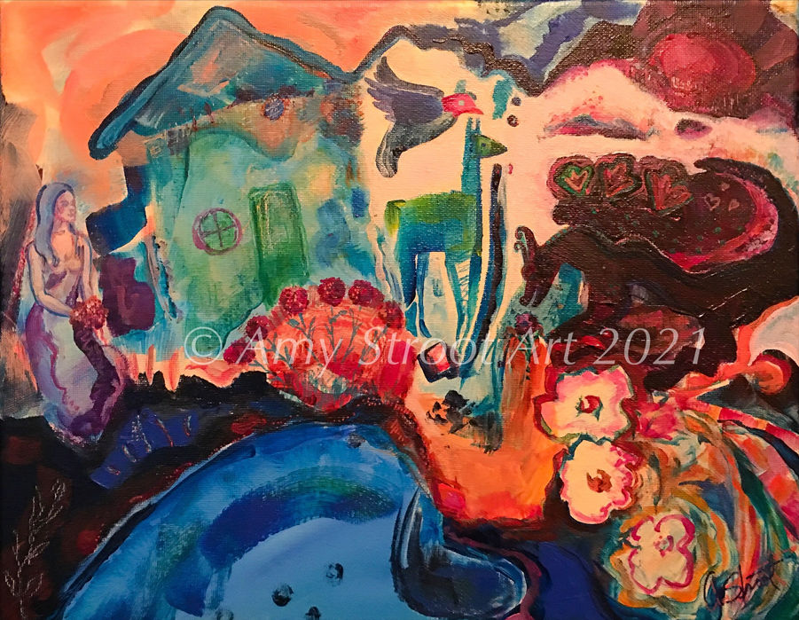 Amy Stroot is a Northern California artist who lives in the San Francisco Bay Area. She creates many forms of fine art, primarily acrylic paintings and oil paintings on stretched canvas, but also works as well as with watercolor and gauche on paper. Please feel free to reach out to her about art commissions or if you have any questions about a particular work of art.